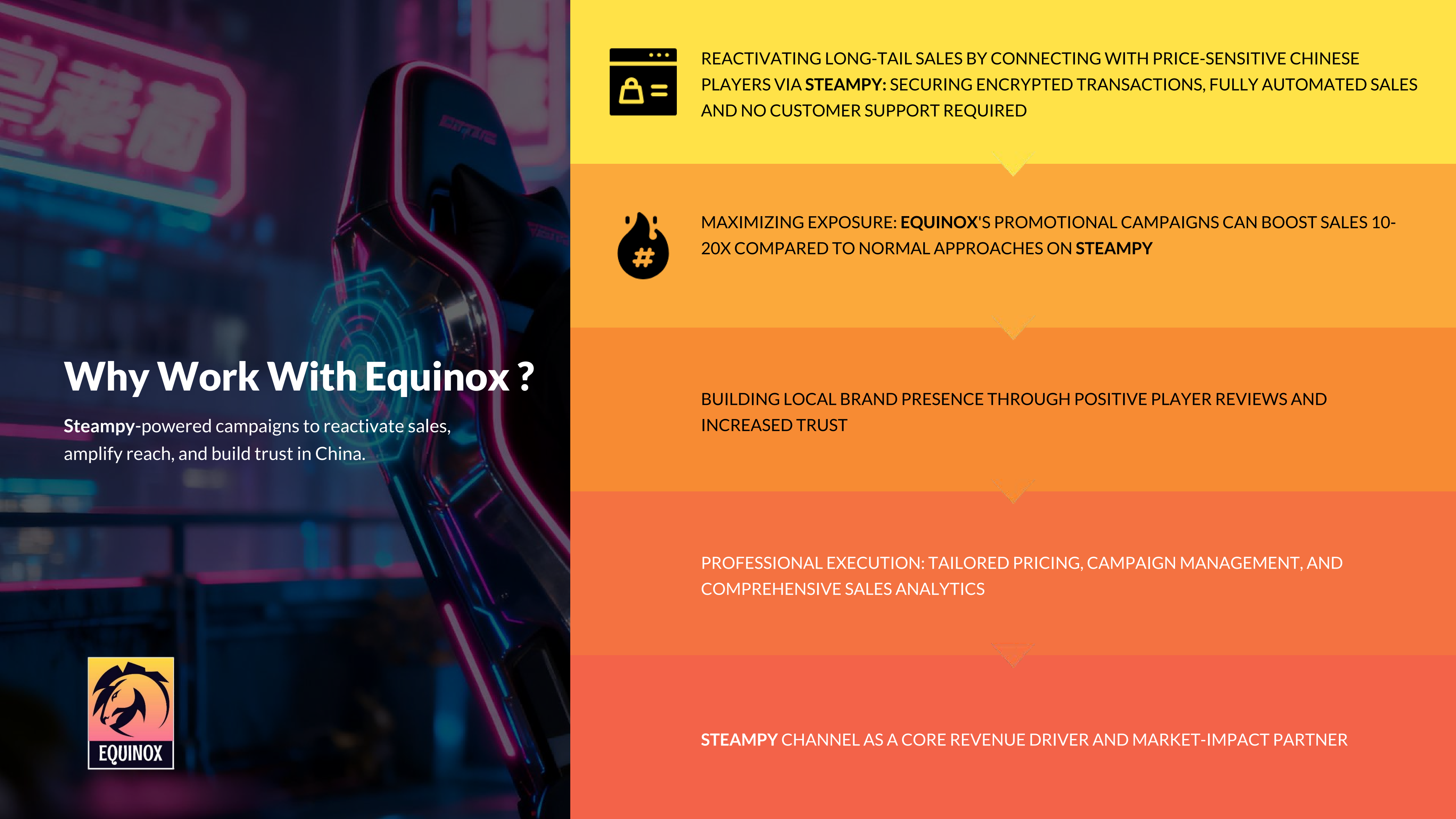 We partner with a legal digital key marketplace in China that supports indie titles, allowing developers to: